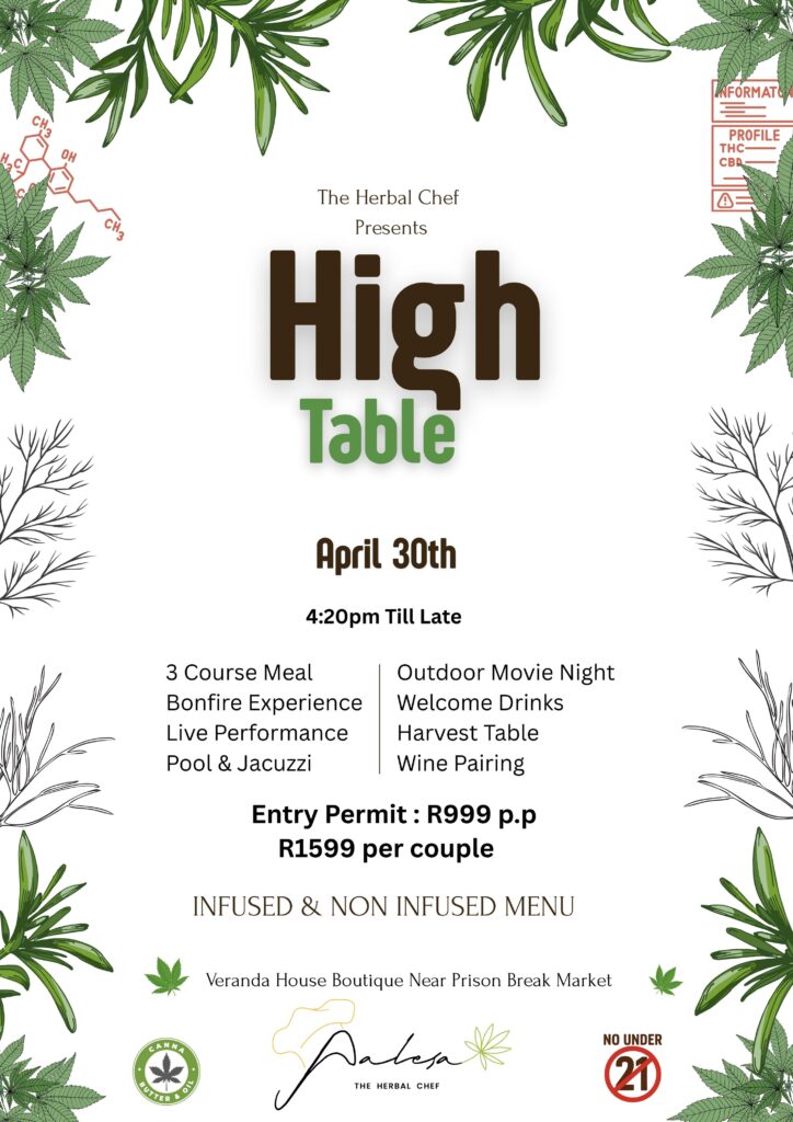 Join The Herbal Chef for High Table – an exclusive 4:20pm till late cannabis-themed evening on Thursday, 30 April at Veranda House Boutique (near Prison . . .