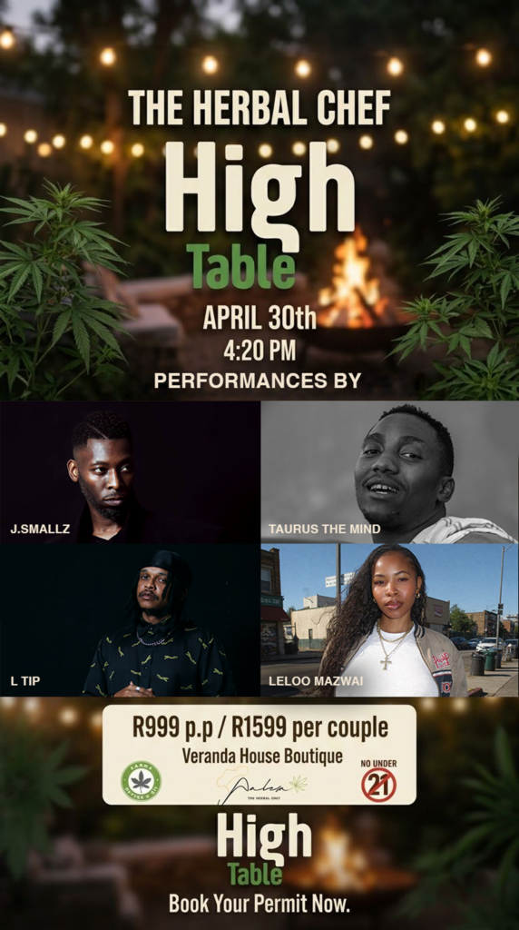 Join The Herbal Chef for High Table – an exclusive 4:20pm till late cannabis-themed evening on Thursday, 30 April at Veranda House Boutique (near Prison Break Market).